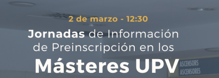Jornada informativa preinscripción en másteres Eventos por Piotr Adam Andruczyk - 1 marzo, 202323 enero, 20260 El 2 de marzo se celebrará en la UPV una sesión, dirigida especialmente a alumnado de último curso de grado pero abierta a cualquier persona, para conocer la oferta de posgrado y cómo realizar la preinscripción. La sesión organizada por el PIAE+ se celebrará el jueves 2 de marzo, a las 12.30 h en el Auditorio del Cubo Azul de la Ciudad Politécnica de la Innovación (CPI). Más información: https://piae.blogs.upv.es/escuelas-y-facultades/ Inscripción: https://www.ice.upv.es/estudiantes/plan-de-apoyo-al-aprendizaje-del-estudiantado-de-la-upv/actividades-de-formacion-estudiantado/piae/actividades-piae/
