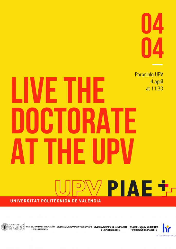 New date of the event LIVE THE DOCTORATE AT THE UPV Events by Piotr Adam Andruczyk - 28 March, 202223 January, 20260 NEXT MONDAY, APRIL 4, is the definitive date for the celebration of the Conference “Live the doctorate at the UPV”. The agenda remains intact.