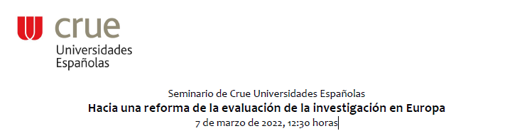 Recording available: CRUE Seminar “Towards a reform of research evaluation in Europe” Events by Piotr Adam Andruczyk - 9 March, 202223 January, 20260 On March 7, CRUE Universidades Españolas has organized a webinar on the European Commission’s proposal to reform research evaluation in the European Union. The recording can be found at the following link: